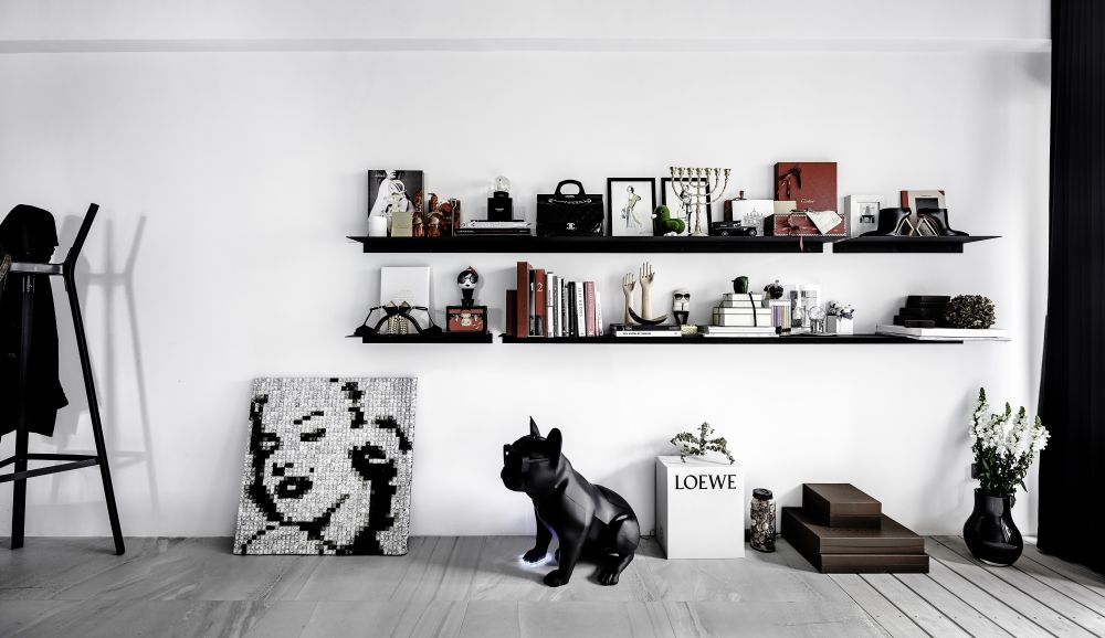 “将工作的生态融入空间中,结合摄影、更衣室、化妆台有如小型的时尚伸展台”氛围设计总监林英彦一语带出整个空间的设计核心。从事时尚产业的一对夫妻,希望将品牌的风格与个性带进自己的工作室同时融入生活中,于是造就了这个性鲜明、以黑、白、灰为主且住办合一的空间。