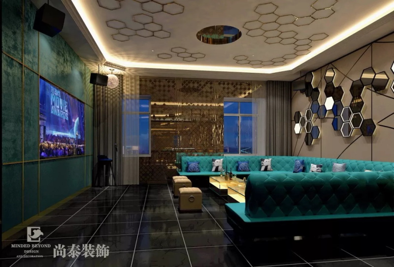 二楼直播区域,尚泰装饰设计团队采用仿生学的蜂窝概念,通过玻璃材质与颜色的运用,将各个直播间逐一的区分开来,