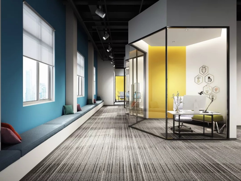 玻璃材质的运用,进一步贴切了关于“时尚”的主题。玻璃作为21世纪最主要的建筑材料之一,总能让人产生出不一样的念想,但凡优秀的简约时尚办公室,无一不与玻璃材质挂上钩,但全部使用玻璃又难免千篇一律,为此尚泰装饰团队在设计的时候,通过石膏板隔墙的留白、上漆与玻璃隔断产生一种质的碰撞,进一步凸显了我们想为品效合一表达的东西——时尚。