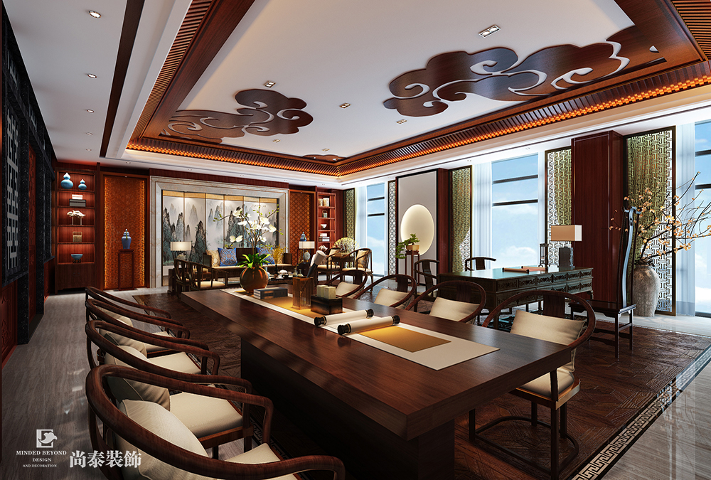 中式风格办公室装饰会较多地应用红木、青瓷、紫沙壶以及一些木雕工艺品等都体现了浓郁的东方之美,这正是中式风格的传承理念,这种简而不俗的应用渗透了东方华夏几千年的文明,它不仅永不过时,而且时间愈久愈,越会释放出迷人的东方魅力。