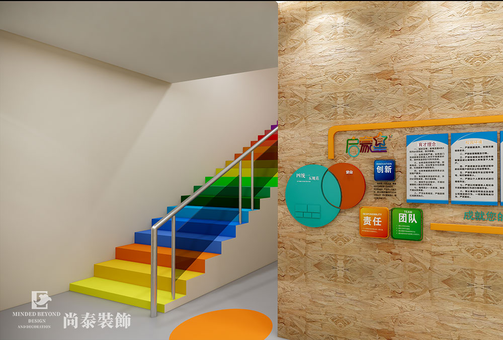 启蒙星教育城装修位于深圳市福田区彩田路海滨广场福德阁,装修实用面积2000㎡,装修风格多彩温馨、舒适活泼。