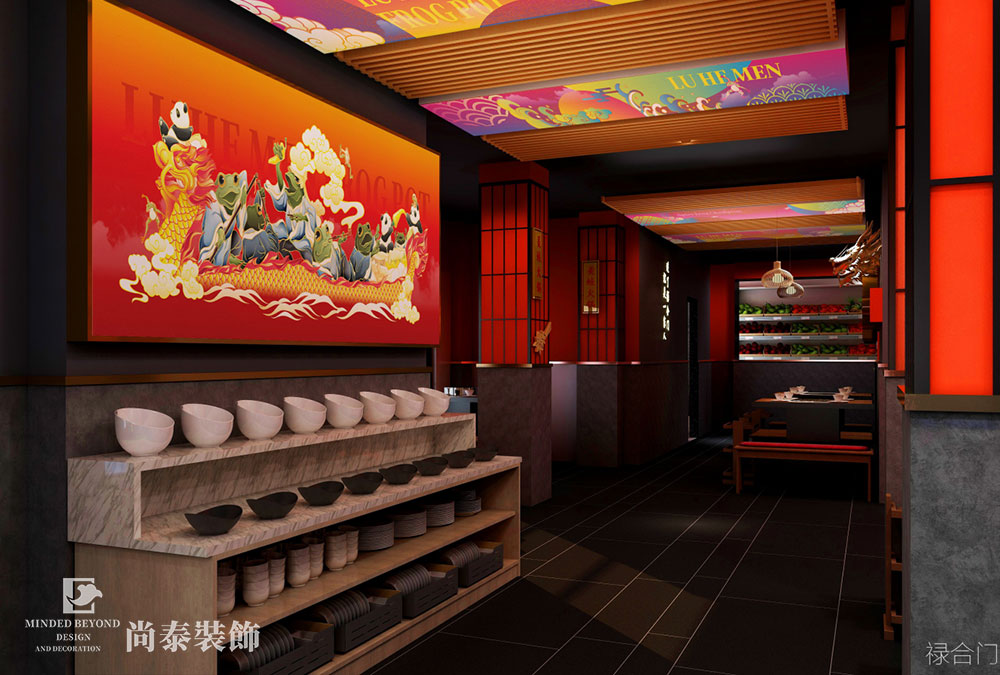 禄合门餐饮连锁店装修设计位于深圳市福田区水围新村162,163栋,装修面积460平米,装修风格现代简约。